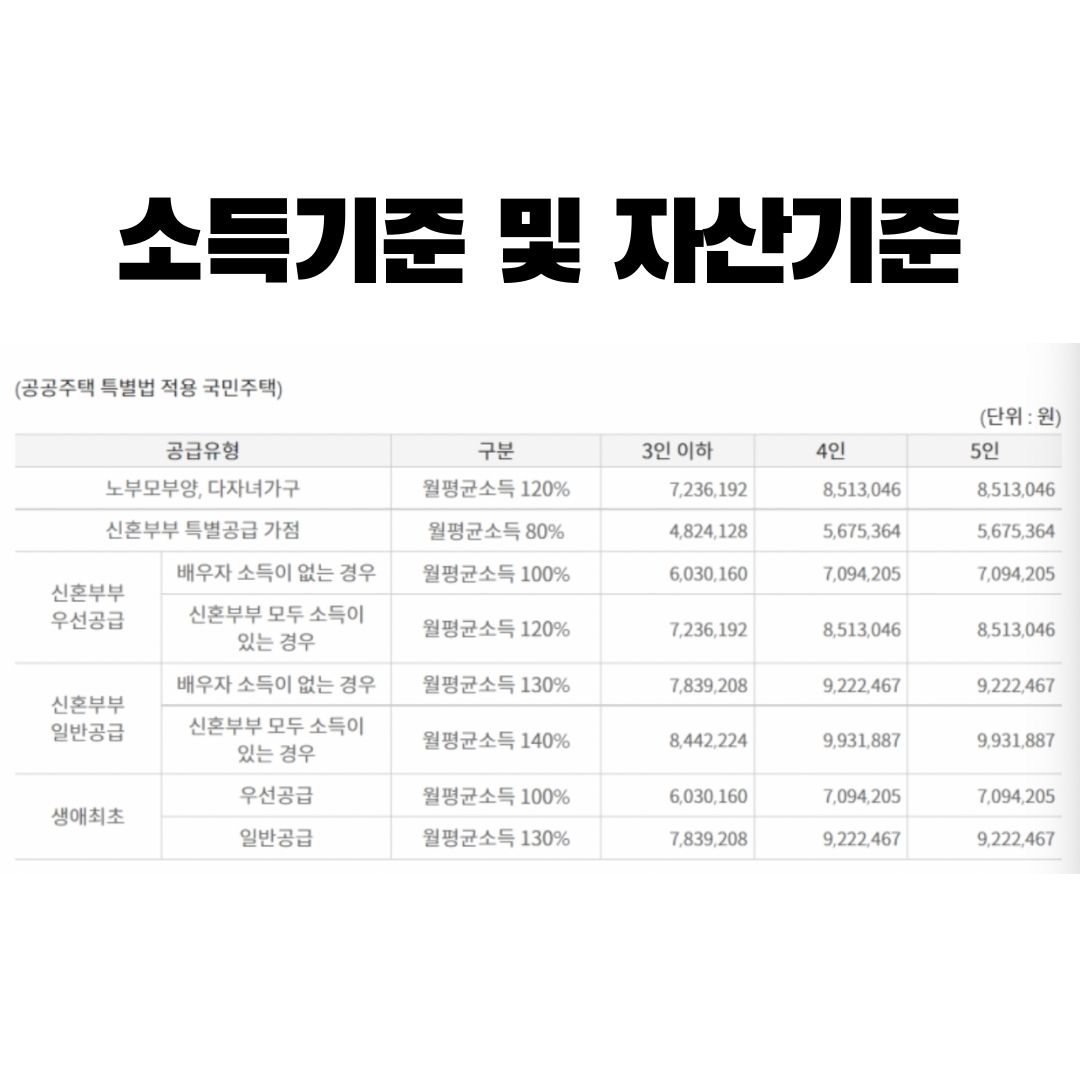 해당 세대의 월평균 소득이 전년도 도시근로자 가구당 월평균 소득의 130퍼센트 이하여야 합니다. 부부 둘 모두가 소득이 있다면 전년도 도시근로자 가구당 월평균 소득의 130퍼센트 이하여야 합니다. 부부 모두 소득이 있다면 140%로 부부 중 한 사람의 소득은 130%를 넘지 않아야 합니다.