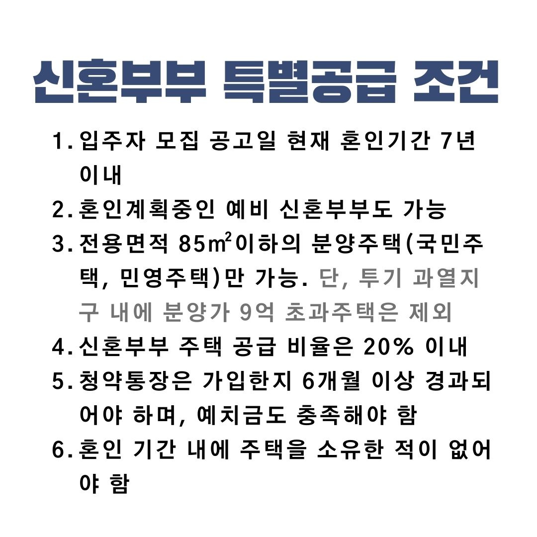 그렇다면 신혼부부 특별공급에 신청할 수 있는 조건은 어떤 것이 있는지 알아보겠습니다.